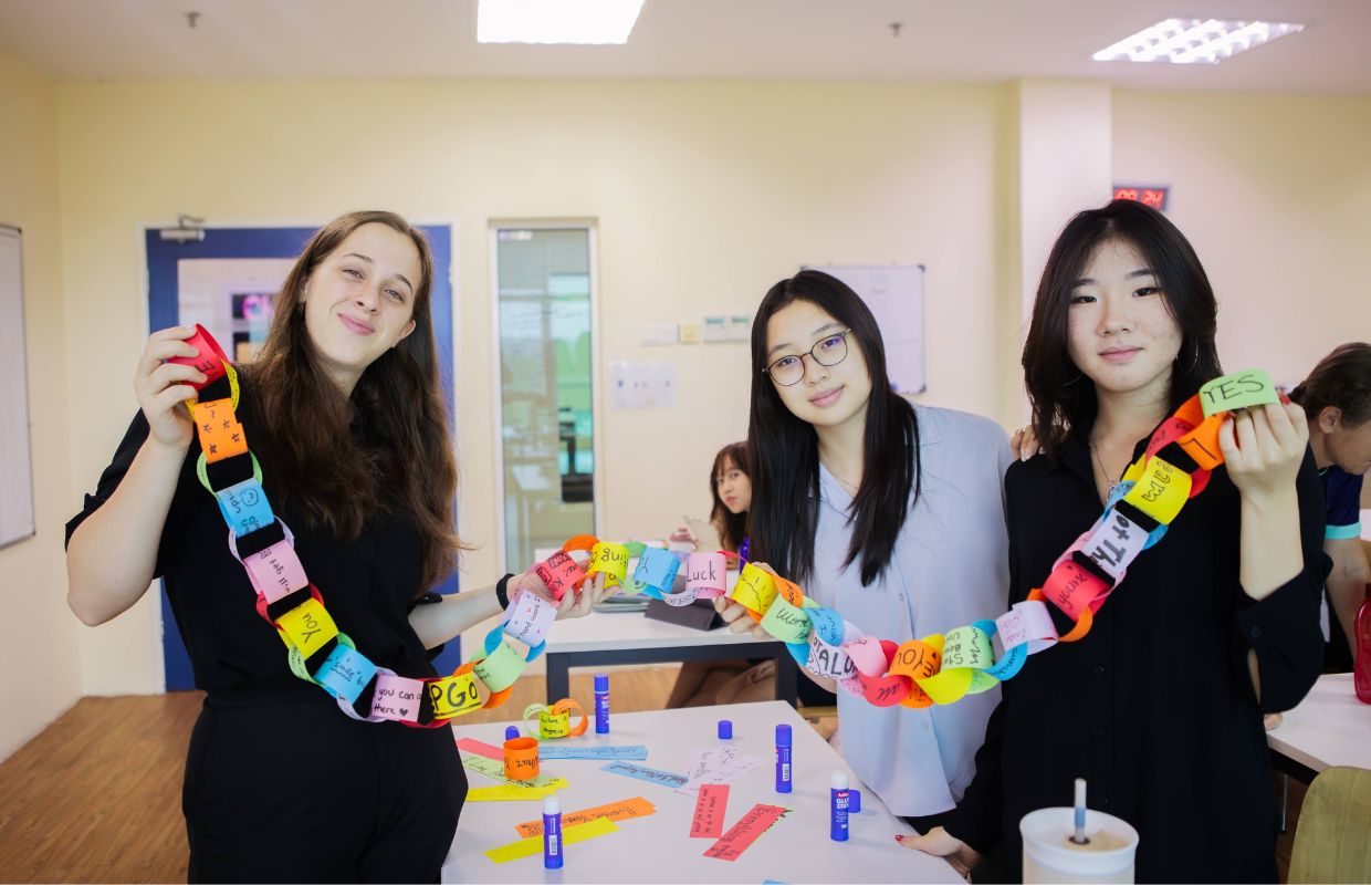 The Thrive Thursday programme, led by Ms Indah, encouraged students to explore identity and human rights. Activities included an Identity Collage highlighting the right to identity, family, and culture, a Campaign Slogan Challenge to promote kindness, fairness, and rights in school and the wider community, and a Visual Statement project reflecting respect, freedom, and equality. In the houses on Friday morning, students wrote words about kindness and human rights on a human template, fostering discussion and reflection within family groups.