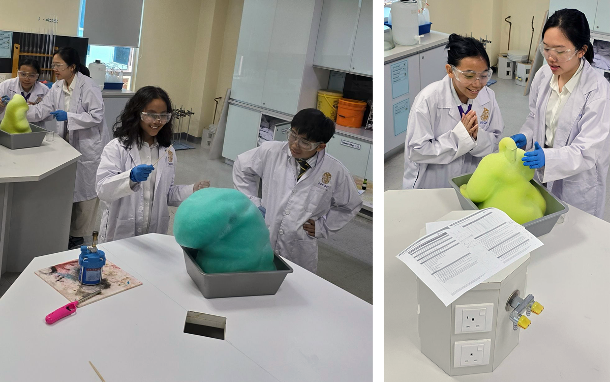 Last Wednesday, Epsom’s Chemistry Society transformed its lab into a stage for one of science’s most visually spectacular demonstrations: the Elephant Toothpaste experiment. The session captivated members as they successfully decomposed hydrogen peroxide into water and oxygen gas at an explosive rate.
