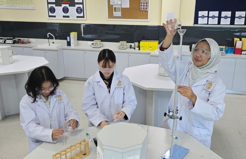 在本周的13年级化学课程中,化学科主任 Mr Mahesh Warrier 带领学生通过一项经典实验,将抽象的“化学平衡”概念以直观的方式呈现出来——探究乙酸与乙醇酯化反应的平衡常数(Kc)。 本次实验的目标是研究反应式: CH₃COOH + C₂H₅OH ⇌ CH₃COOC₂H₅ + H₂O。 学生们通过此实验理解到,与反应完全进行到底不同,酯化反应会在一定温度下达到动态平衡,此时反应物与生成物共存,而平衡常数 Kc 在固定温度下保持不变。 学生分组进行实验,精准量取1.0 mol/dm³乙酸与乙醇溶液,并加入浓硫酸作为催化剂,密封于试管中形成封闭体系,以防止挥发性物质逸出。反应体系静置一周,让反应达到平衡状态。 一周后,学生取出样品,用标准氢氧化钠溶液进行滴定,通过测定未反应乙酸的浓度,再根据化学计量关系(1:1:1:1比例)推算出乙醇、乙酸乙酯及水的平衡浓度。 最后,学生将所得数值代入平衡常数表达式: Kc = [CH₃COOC₂H₅][H₂O] / [CH₃COOH][C₂H₅OH]。 全班的实验结果显示 Kc 值相当一致,约为 4,验证了在相同温度下,化学平衡常数确为固定值这一基本原理。 通过此次实验,学生们不仅加深了对动态平衡的理解,也掌握了定量分析化学反应平衡位置的方法,有效地将课本理论与实际操作相结合。 Mr Mahesh WarrierHead of Chemistry