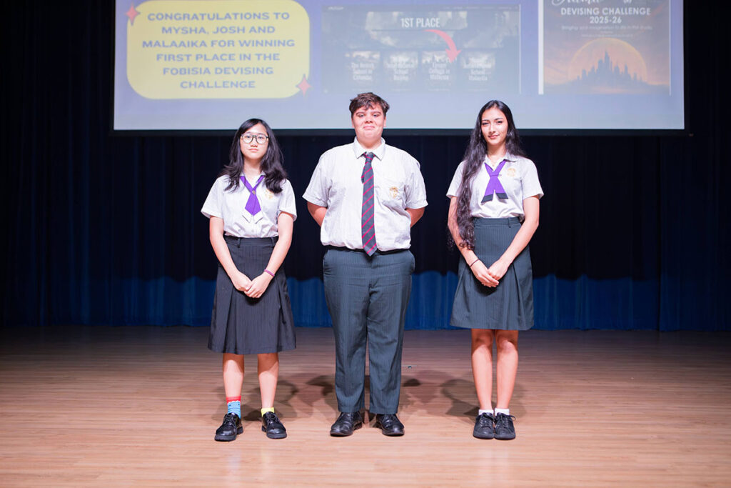 戏剧部非常高兴地与大家分享一个好消息:我校 IGCSE 学生在由曼谷惠灵顿国际学校(Wellington College International School Bangkok)主办的 FOBISIA Key Stage 4 在线戏剧创作比赛中荣获冠军。本次比赛主题为 《2125:最后的城市》。这一成绩不仅令人振奋,也充分体现了学生们在创意表达、团队合作以及投入程度上的出色表现。 本次比赛邀请来自 FOBISIA 各成员学校的学生,根据指定的创意主题进行戏剧创作。题目设定为:“时间来到2125年,你生活在‘最后的城市’。人类仅存的最后一座城市正艰难延续文明。这里会发生怎样的故事?谁能够生存下来?什么已经消失,又有什么仍然可能被重新发现?” 在这一设定基础上,学生们需要创作并呈现一段原创戏剧作品,以表达他们对未来世界的独特想象。 学生们以小组形式合作完成创作。虽然作品时长不长,但挑战并不简单:他们需要在团队合作中构建清晰的故事结构,并通过戏剧表演技巧将创意呈现出来。 我校学生以极大的想象力和热情投入到创作中。通过不断讨论、排练和尝试,他们逐渐打磨出一段兼具思考深度与创意表达的戏剧作品。尤其令人印象深刻的是他们出色的团队配合,以及在创作过程中彼此支持、共同完善作品的精神。从最初的创意构想到最终自信而生动的舞台呈现,整个过程都令人欣喜。 在此,我要特别祝贺 Mysha D.、Malaaika W. 和 Joshua G. 三位同学。他们在项目中展现出的投入与热情令人赞赏。这样的活动不仅让学生勇于尝试创意表达,也让他们在团队合作中体验到与更广泛观众分享作品的乐趣。他们的成功实至名归,也为学校和戏剧部赢得了荣誉。 同时,也要感谢 Mrs Garnett 和 Mrs Long 在排练与拍摄过程中给予学生的支持与指导。她们在组织协调、专业建议以及持续鼓励方面发挥了重要作用,帮助学生们不断完善作品,并最终呈现出精彩的成果。 我们为学生们取得的这一成绩感到无比自豪,也非常期待未来看到他们带来更多充满创意的作品。 Mrs Tamlyn Calder Head of Drama