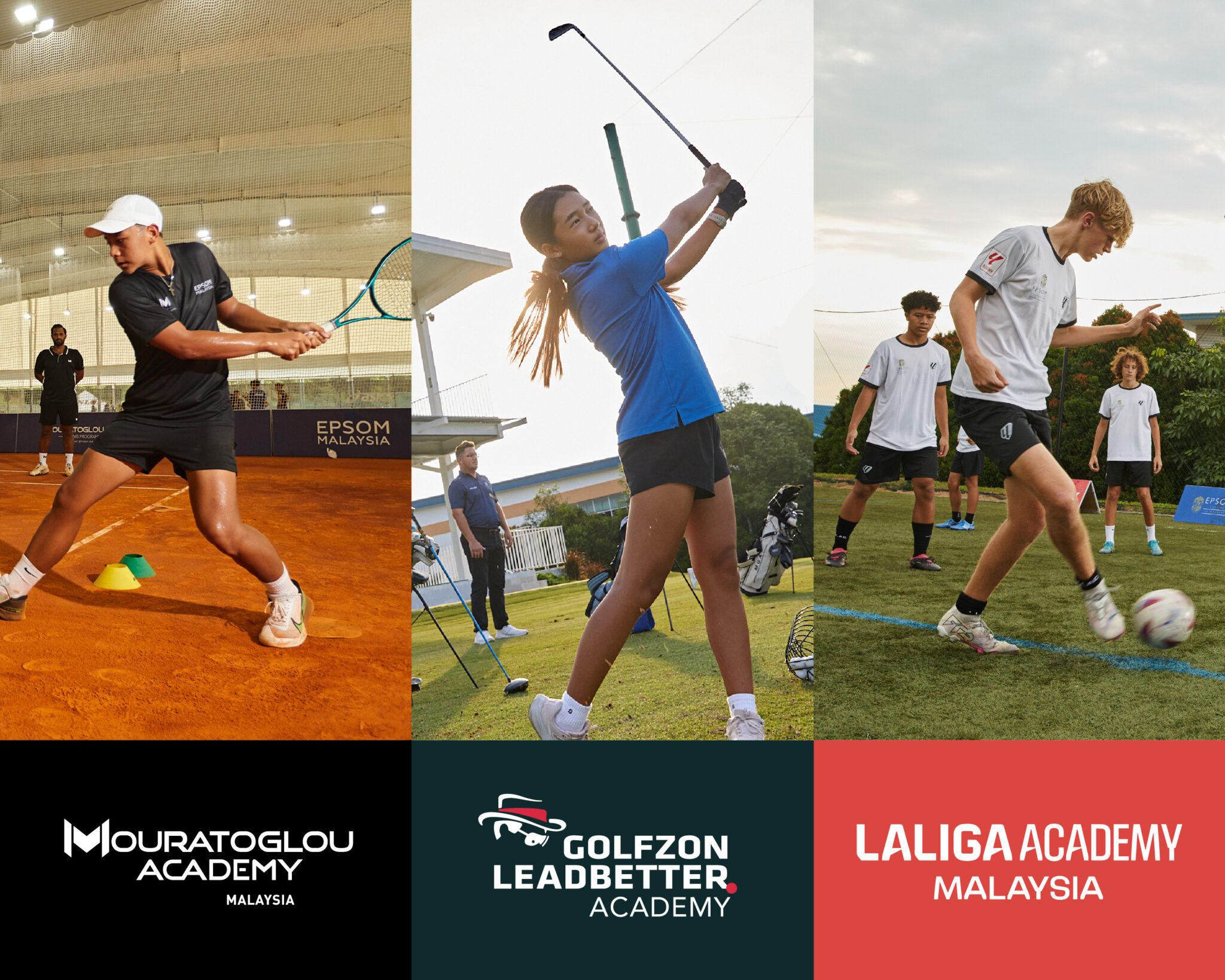 Beyond academics, Epsom offers outstanding sporting opportunities through partnerships with world-class academies. Aspiring athletes can train with Mouratoglou Academy Malaysia with certified coaches on 11 ITF-grade courts, including the only two indoor clay courts in Southeast Asia, develop their game at the GOLFZON Leadbetter Academy with PGA-certified instruction, TrackMan technology, and a 5-acre on-campus facility; or refine their skills at the LALIGA Academy Malaysia with UEFA-level coaching on a FIFA-certified 4G pitch using VO3 performance analytics.